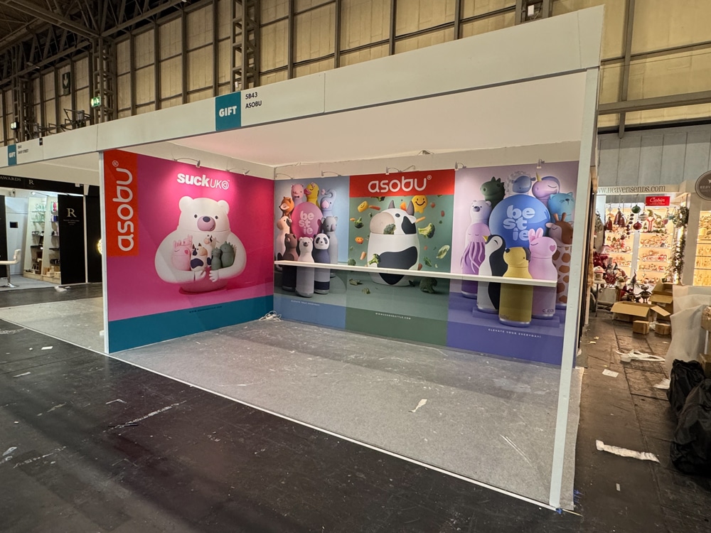 Asobu asked us to build a 15sqm shell scheme interior stand for them at Spring Fair 2025 – at the NEC. The stand featured: